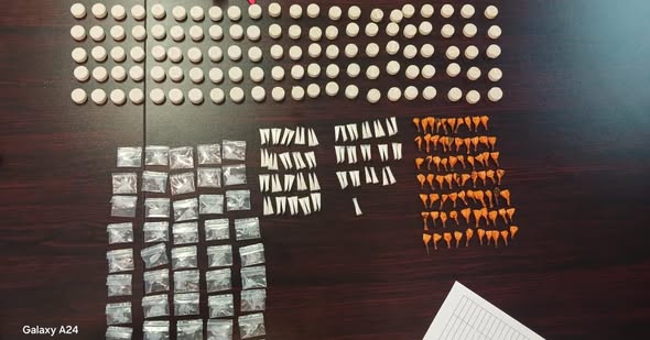 An imitation AK SA Arms firearm with blank rounds was also seized. The suspects, aged 26, 27, and 37, were arrested on drug and firearm charges.