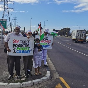 In Cape Town, activists held a demonstration along the busy Jakes Gerwel Drive in Athlone to denounce the Israeli occupation, and latest acts of aggression.
